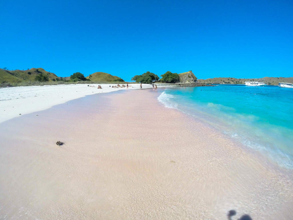 A famous beach that has turned a pinkish color from crushed up coral.