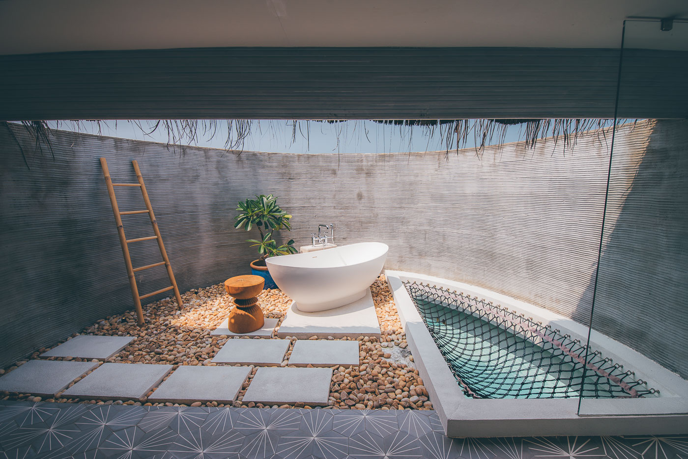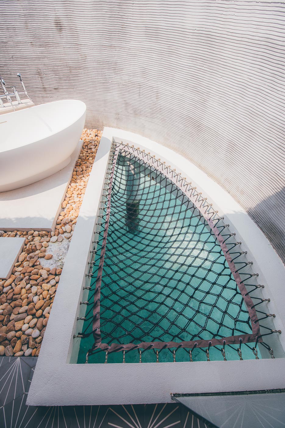 The overwater villa bathrooms also had a mini hammock there as well that lights up at night, which I thought was a super cool addition!