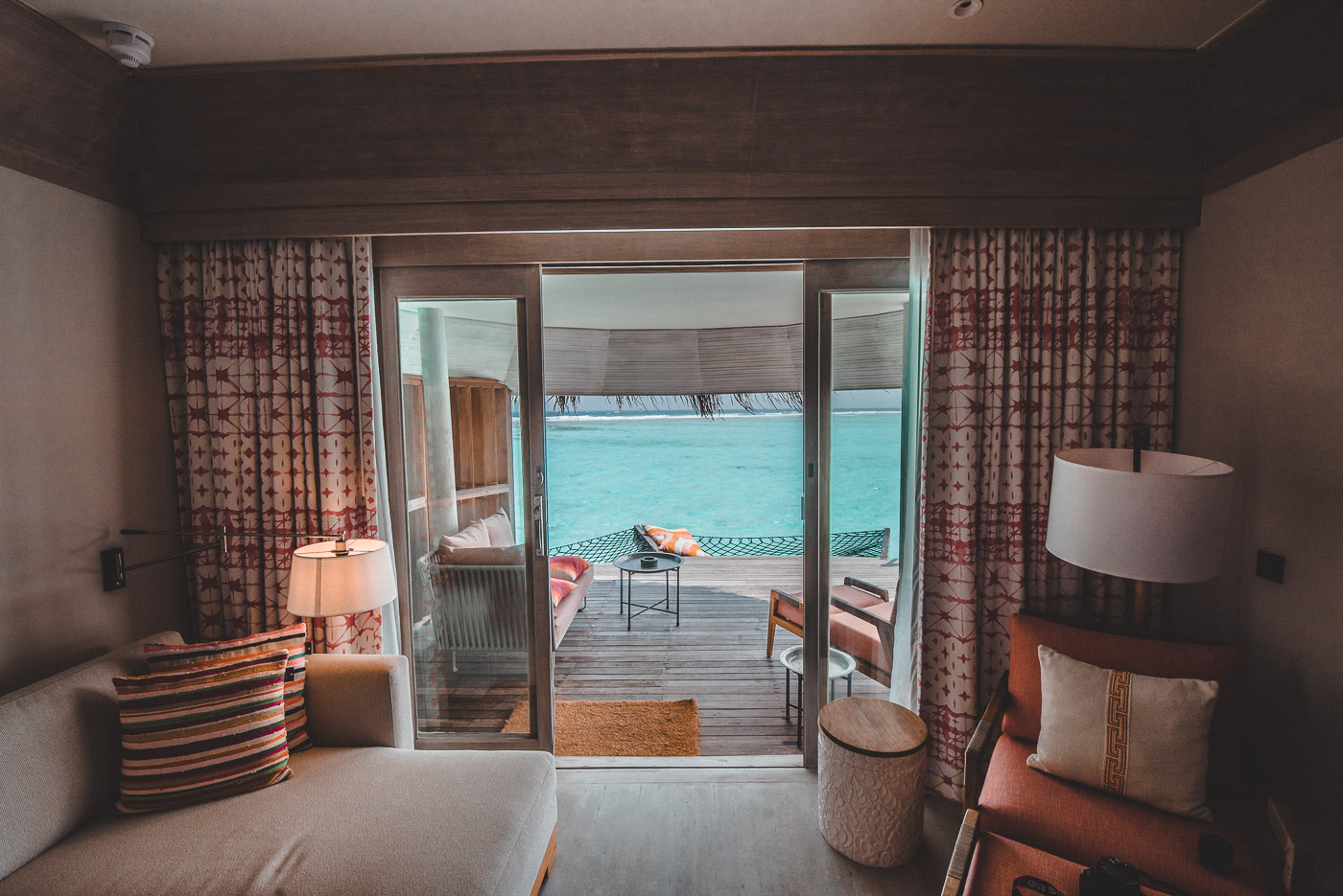 While Tom and I stayed in one of the island’s villas (with pool), we got the opportunity to take a tour of the overwater villas one afternoon, and I was seriously in a Maldives dream!