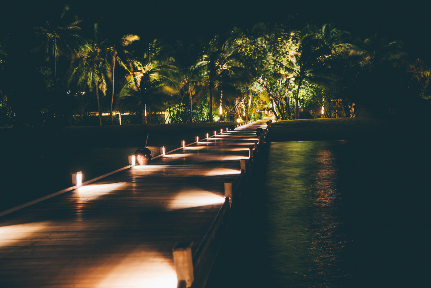 The combination of the moonlight, the perfect tropical weather at night, the warm wind that hits your body as you bike, and the way the overwater villas light up at night…is one of the coolest sensations/things I did during the entire month in the Maldives.