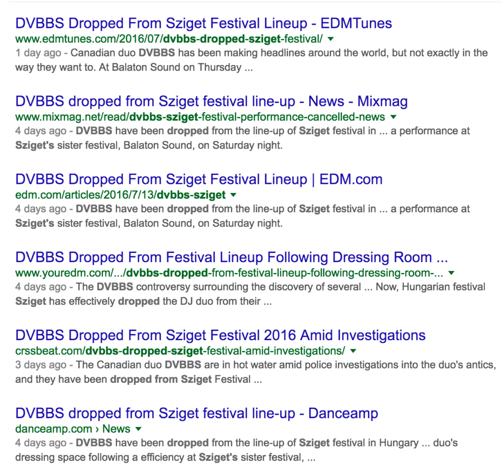 They’ve also been all over the news recently because two unconscious girls were found in their dressing room at the festival. Fortunately, they’ve already been dropped from the Sziget line-up. Let’s hope more festivals stop booking these lame, fake, douche bags.