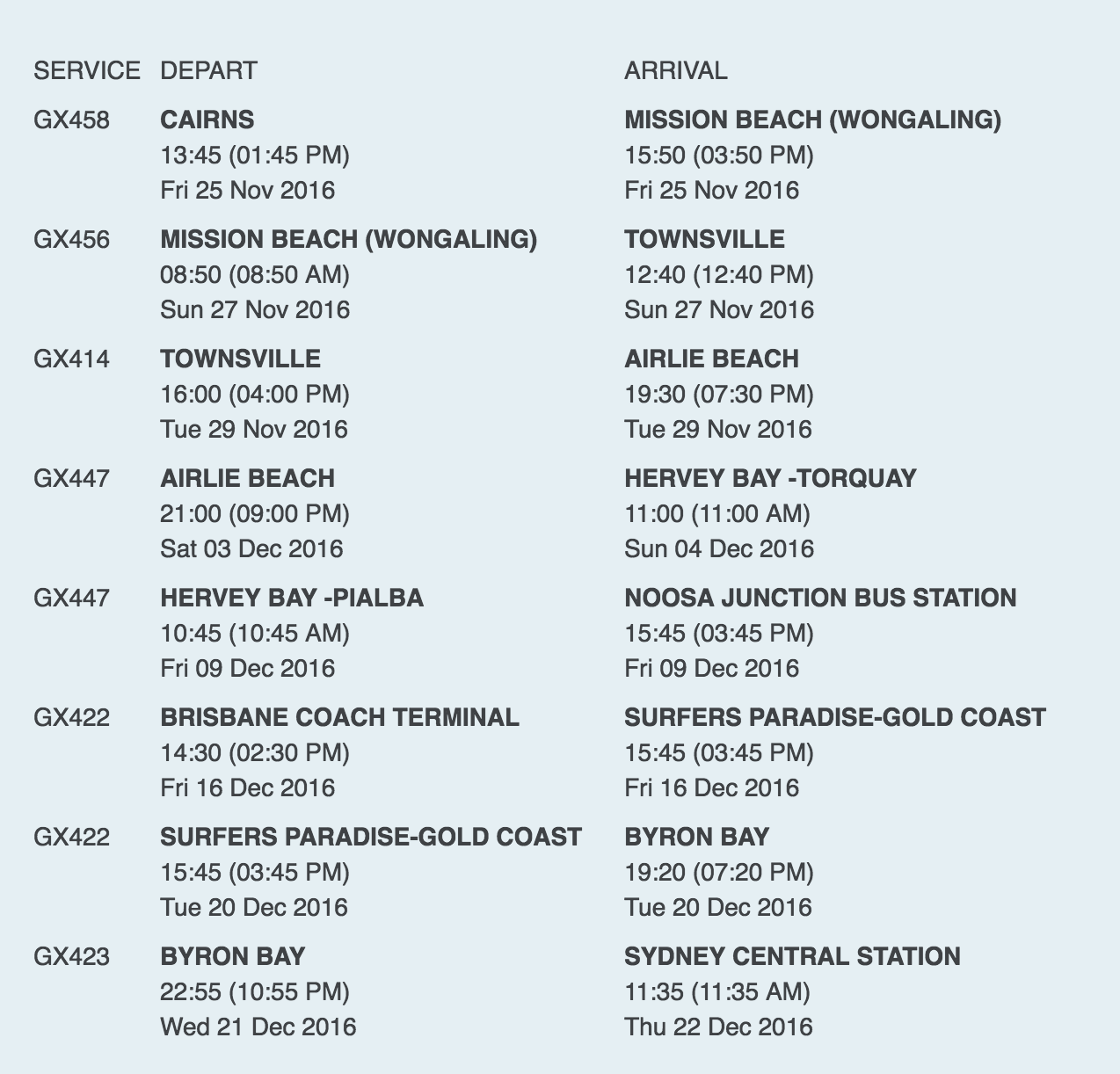 I remember searching for details about the Greyhound Bus Pass, but never found a really great blog about it. So that’s what I’m going to give you guys. I’ll share with you my detailed Cairns – Sydney route, timetable, and some other helpful information. If you are planning a similar trip, feel free to shoot over an email, and I’d be more than happy to help in any way I can.