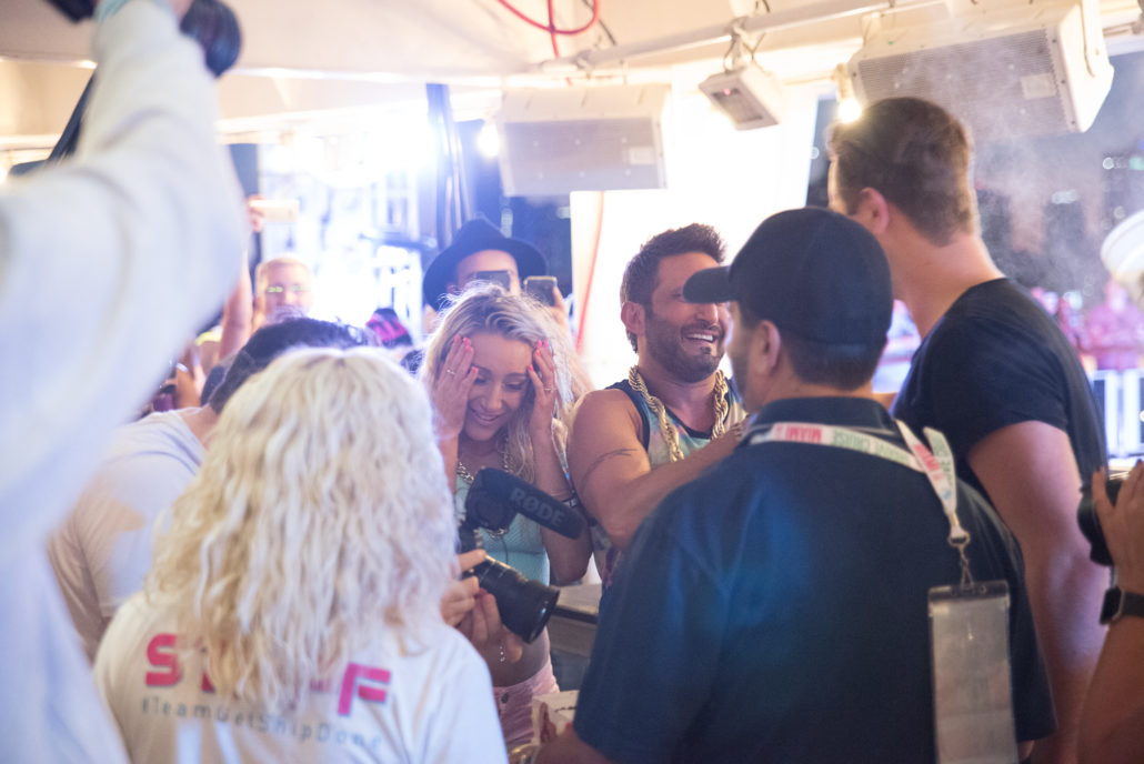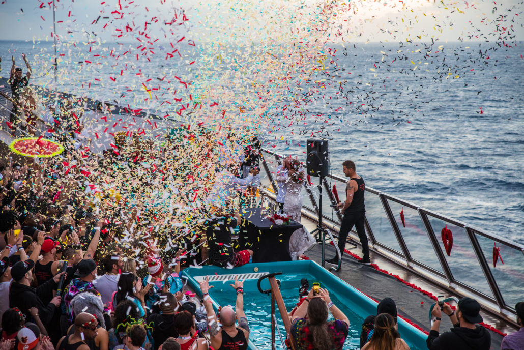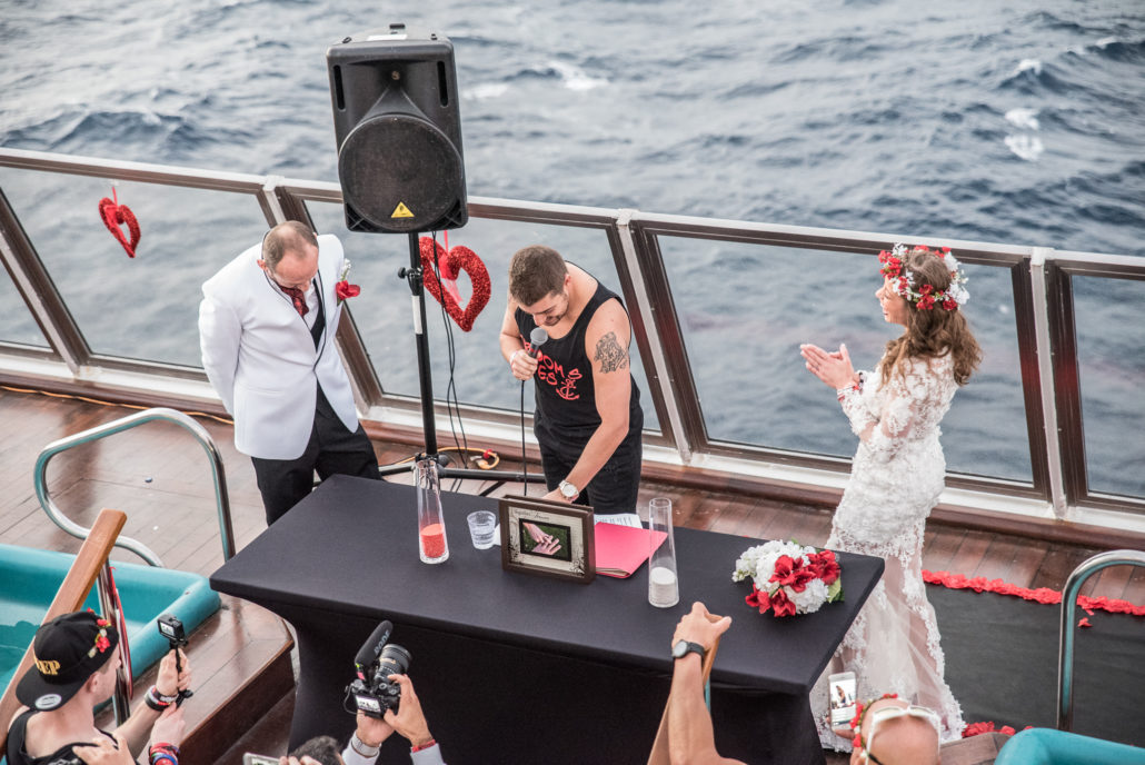 I’ll admit I didn’t even know there was a wedding scheduled — so I quickly scurried over to the other side of the ship, and fortunately had arrived just in time to witness the magic!  It was a beautiful ceremony, of an even more beautiful couple.  Officiated by DJ Mimosa, and with a massive crowd of GC FAM, it was definitely a special moment onboard GC Miami.