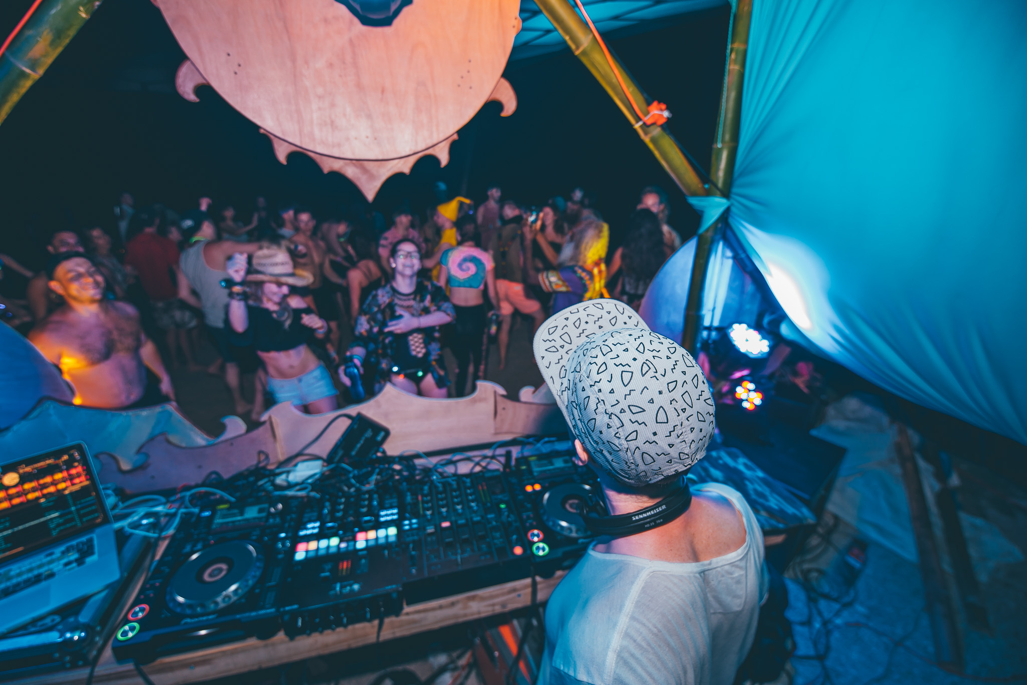 I’d look around our small island, and I’d see people practicing Acro Yoga, playing with Poi, going for a swim, or just day-drinking and dancing to the DJ’s. Good vibes all around!