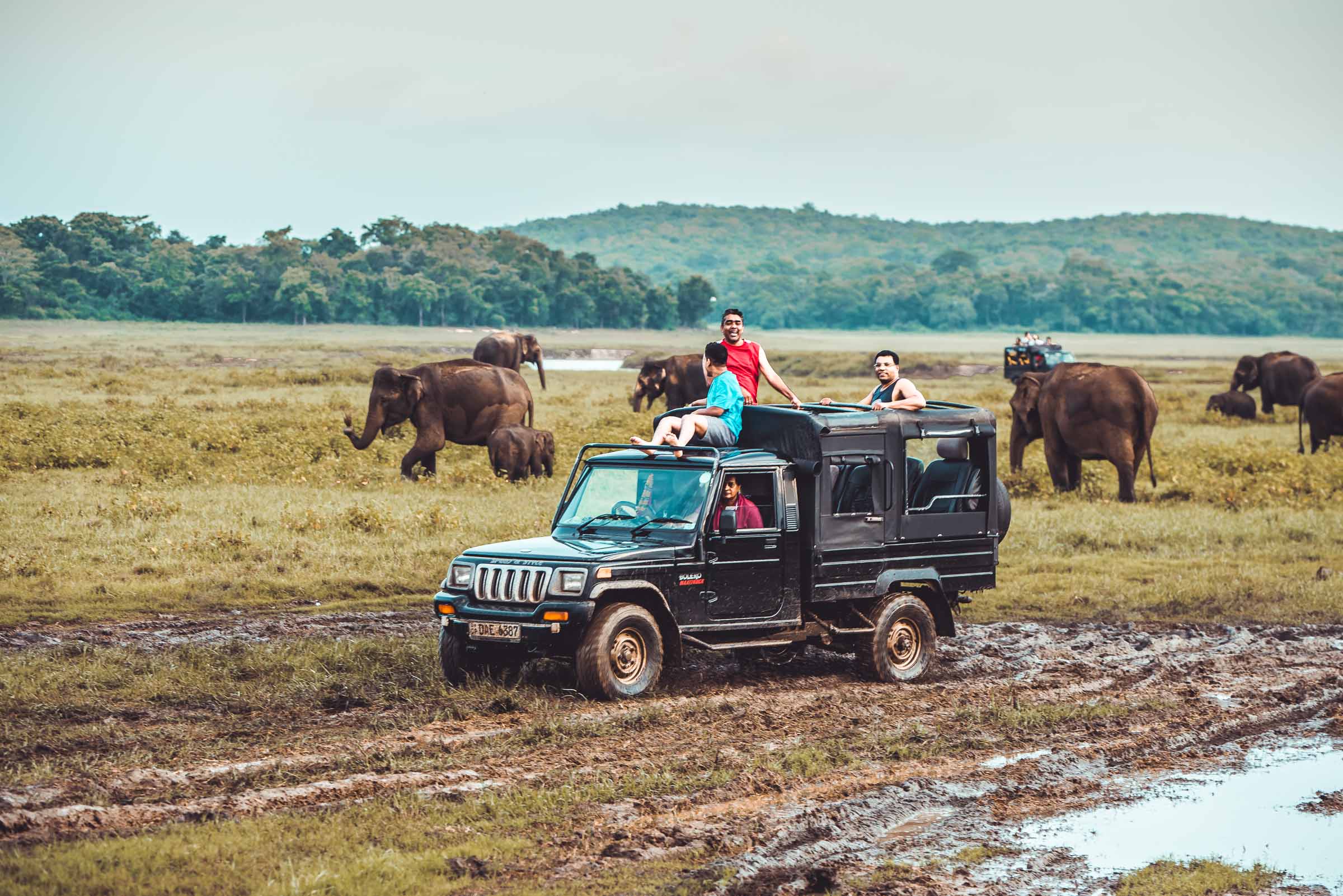 It all started with an extremely bumpy drive through the Sri Lankan jungle, while standing up in the back of the jeep and humming the “Indiana Jones “theme song. As the massive 4×4 vehicle maneuvered through the muddy path in front of us, I struggled to maintain my balance long enough to take a sharp picture. Then unexpectedly to my rescue, our friendly Kaudulla National Park tour guide wrapped his arms around my chest, stabilizing my body, thus allowing me to snap some photos of this turbulent adventure.