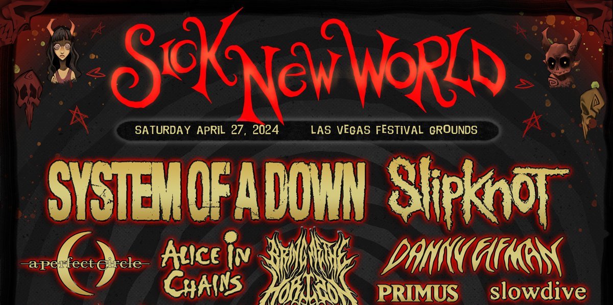 System Of A Down will once again be one of the headliners. The other headliner is Slipknot, and other big names include A Perfect Circle, Alice In Chains, Bring Me The Horizon, Danny Elfman, Primus, Swans, Lamb of God, Knocked Loose, Spiritbox, and more.”