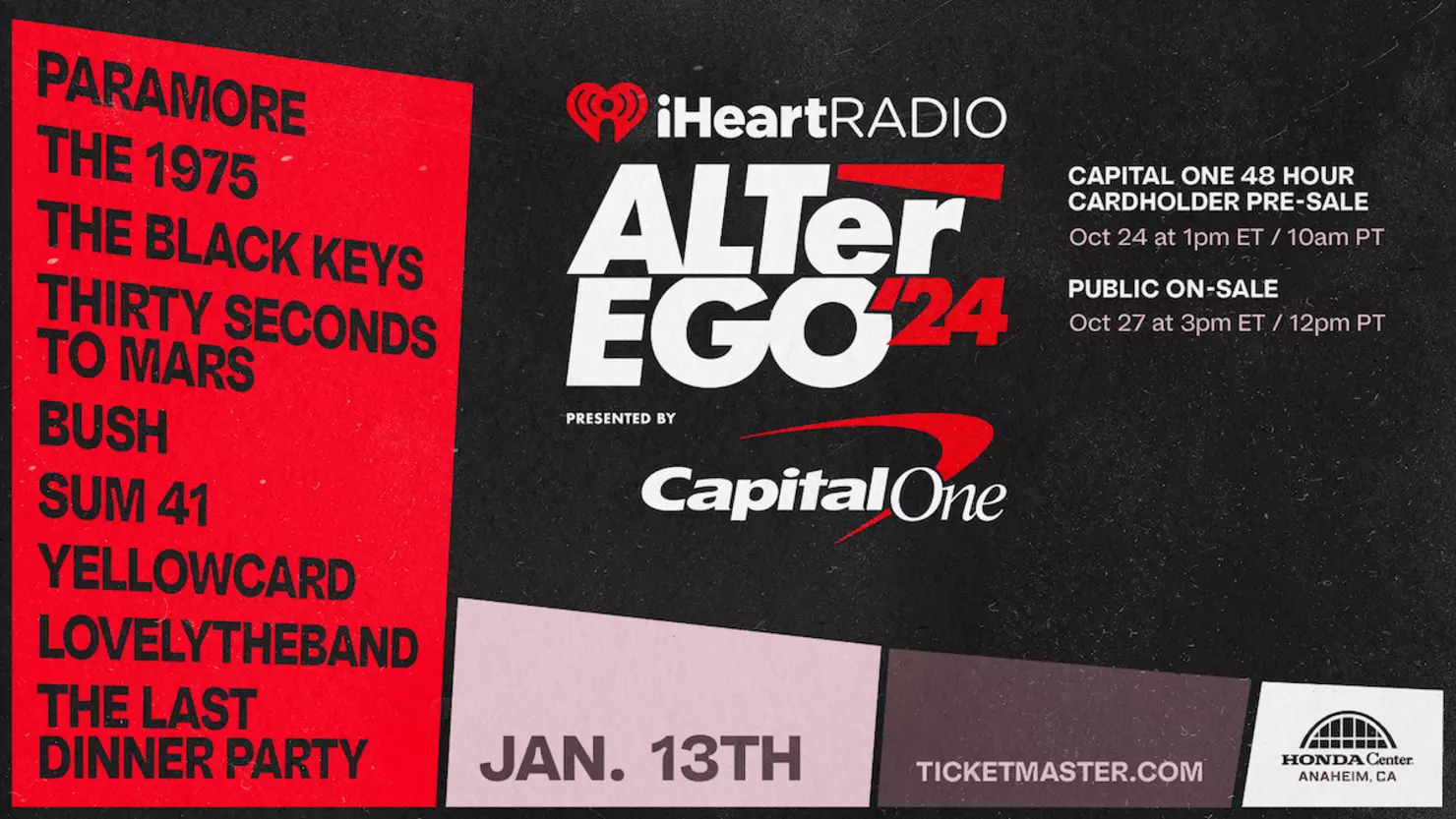 “The ALTer Ego Festival brings big names from the rock world to the the Forum for a massive single day concert.”