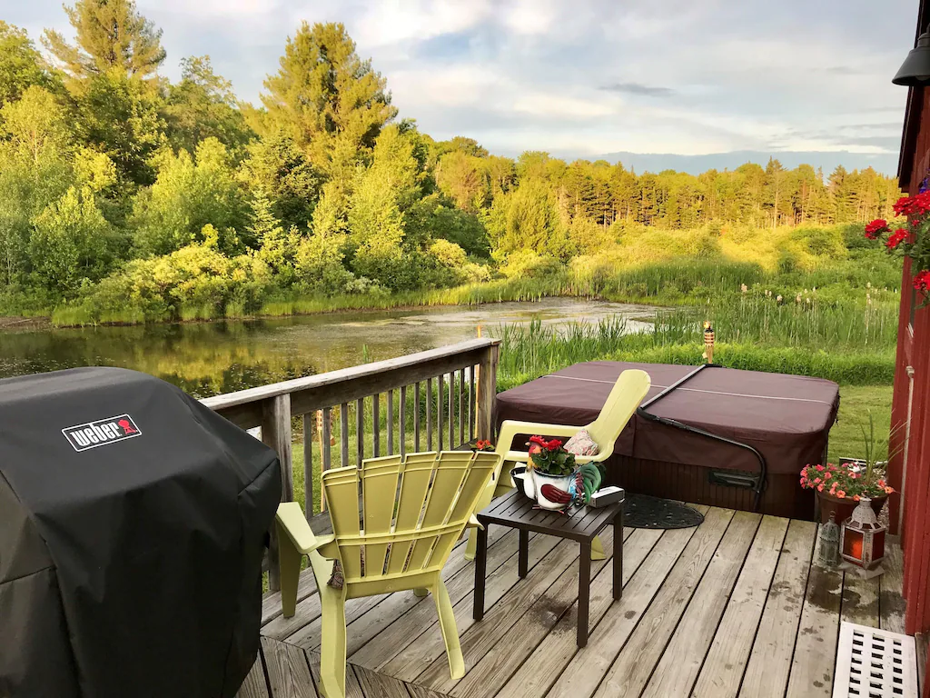 This cabin rental in Vermont is the last on my list, but certainly not the least. Escape to the Trout cabin on Magic Mountain with your partner, especially if they are a fishing enthusiast. The site has a trout pond which guests can access for fly fishing.