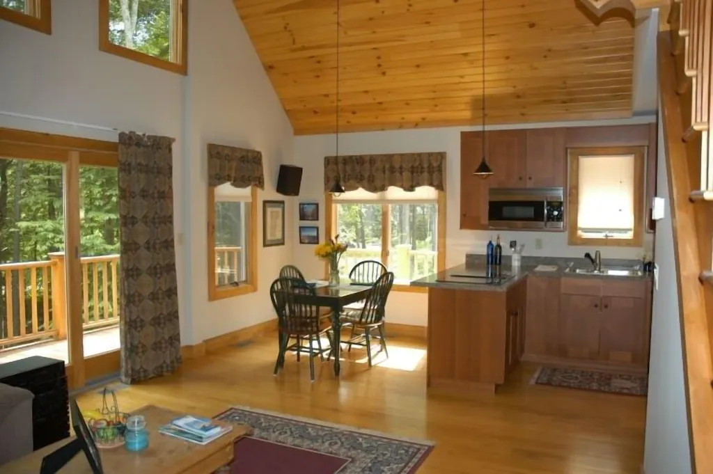 Guests can access the Hermitage Golf course and private community pool to make the trip more entertaining. If that’s not exciting enough, you can hike to nearby Lakes Whitingham and Raponda, where you can kayak, water ski, jet ski, and motorboat. Visitors can also ski down Mt. Snow or explore the quaint town of Wilmington. Whatever you desire, the cabin provides you with enough leisure and seclusion to catch a break or enjoy the great outdoors.