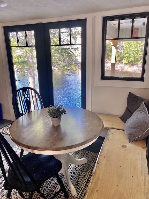 Step outside the cabin and plop into outdoor furniture to absorb the breathtaking natural features. The highlight of this site is the kayaks and canoes available for use by guests. Snowboarding, birdwatching, and fishing are all available to you as well. There’s no better way to experience a Vermont cabin rental on a lake.