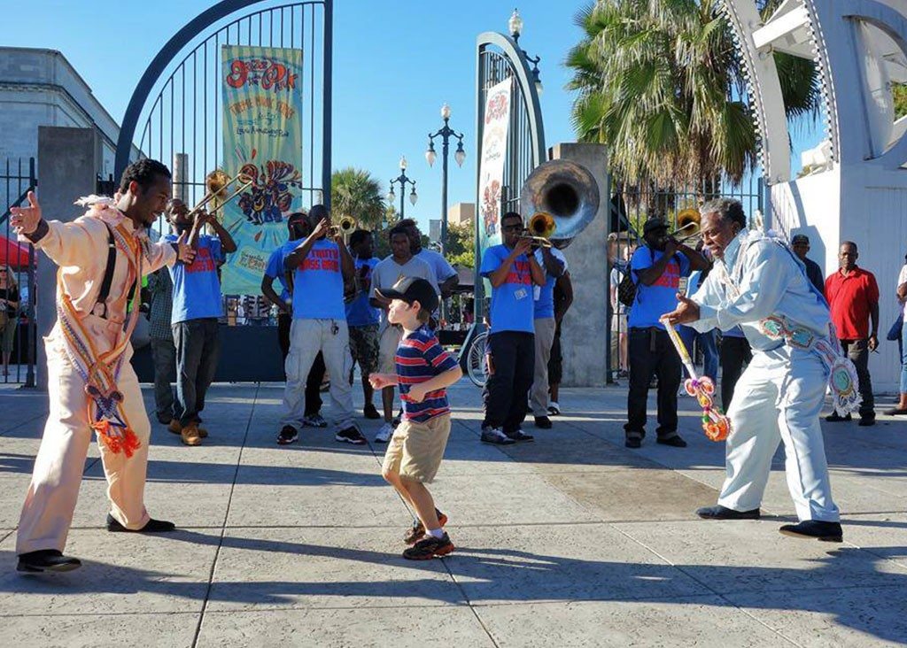 “It was in Congo Square that enslaved African people gathered on Sunday afternoons to practice their ancestral traditions. Their legacy lives on in our Treme Creole Gumbo / Congo Square Rhythms Festival, a free event that celebrates the music, food, and dance of our forebears, creating an event that is fun for the whole family. Mardi Gras Indians, African dance, brass bands, luscious jazz, soul-funk, Latin jazz and West African highlife – all these are in store for music fans at the 12th annual Congo Square Rhythms Festival, presented by the New Orleans Jazz & Heritage Foundation in Armstrong Park. Celebrating the New Orleans traditions that spring from the African diaspora, the Congo Square Rhythms Festival brings a joyful noise to the spot that those in the know consider the birthplace of American music.”