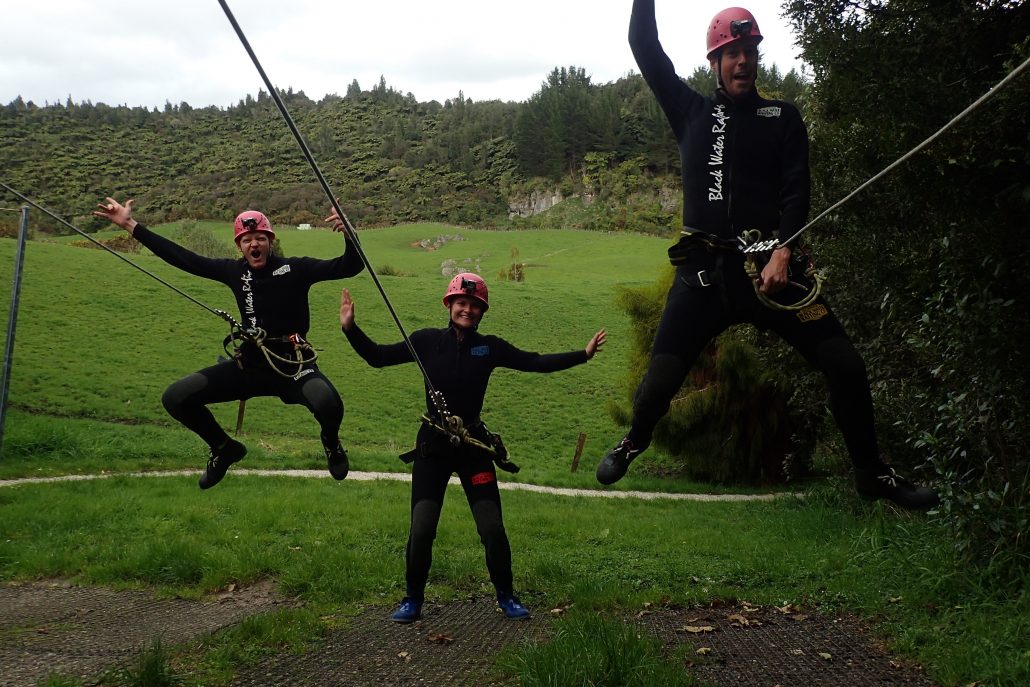 We abseiled 35 meters through a narrow hole into the cave, zip-lined in complete darkness under glowworms, swam in the underground (freezing cold) black water river, floated in innertubes while marveling at the bright blue glowworms while my friend Caitlin sang an incredible acapella version of “Oh Danny Boy”), explored different alleys in this complex Ruakuri Cave system, and finished the tour by climbing up two rushing waterfalls.